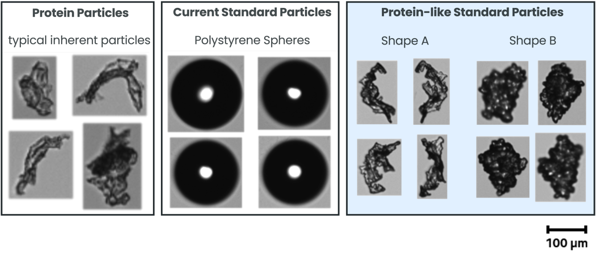 Inherent particles are often characterized by distinct shapes and behaviors in solution. Based on customer requirements, we design standard particles that match the shape and behavior, such as near-neutral buoyancy, of product-specific particles.